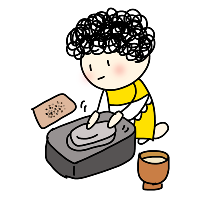 砂をかけながらこすり合わせたり、水と一緒に泥状にしてこすったりしていると、