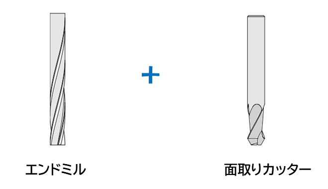つまり、エンドミルと面取りカッターの2本の工具が必要