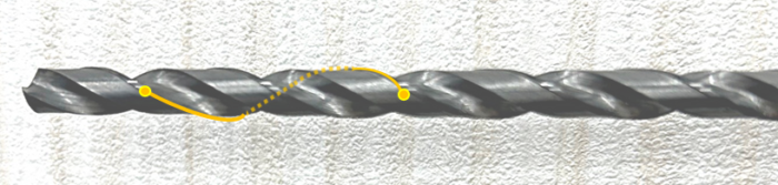 ねじれ角が一定じゃないから、切り粉の出ていく溝も一定の向きじゃないねん。