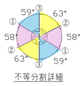 刃と刃の分割角度が等分でない仕様のこと。わざと角度を「不等」にしてます。