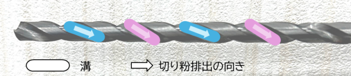 切り粉の排出方向が変わるから、切削時の抵抗を分散させることができるねんて。