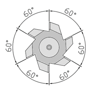 例えば6枚刃の場合、等分にしようと思うと360°÷6=60°